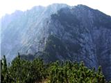 Nastavljamo samo malo desno manje izraženom dolinom prema graničnom grebenu na sjeveru. Dolaskom do njega (graničnika) idemo desno, gdje nastavljamo uzbrdo među borovicama na graničnom grebenu, gdje staza povremeno prolazi uz desni rub. Kada dođemo do dosta uskog dijela grebena, počinje zahtjevniji dio staze, nakon čega slijedi isprva strmi stjenoviti spust neugodnom aluminijskom sajlom. Nakon toga se nalazimo na još užem dijelu grebena, gdje staza (prvo desno) prolazi između i pored borova. Ubrzo ponovno slijedi kraći spust po izrazito mrvičastom kamenitom terenu, a staza nakon toga postupno skreće na lijevu stranu grebena, gdje se ubrzo po aluminijskom užetu strmo uspinje natrag na svoj vrh. Izloženost i problemi ne jenjavaju, a nalazimo se pred trećom barijerom: gotovo okomitim dimnjakom, opremljenim jednakim užetom i čeličnim držačima. Kada dođemo do njegovog vrha, staza prolazi desnom stranom grebena, gdje se malo uspinje i nakon ove strmije silazi, a ubrzo se po sličnom užetu također vrlo strmo uspinje u smjeru istoka (oprez, vlažan teren!) . Prema vrhu uspona staza skreće desno, gdje se kasnije nalazimo među patuljastim borovima na kraju staze Skalaška pot.