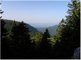 Nastavljamo lijevo u pravcu Konja (desno Velika planina) i nastavljamo kroz blagu livadu, kojom se uspinjemo do ruba šume. Staza naprijed prelazi u šumu, gdje skreće desno i počinje se postupno sve strmije uspinjati. Slijedi cca 20 minuta strmog uspona kroz šumu, a zatim nas staza dovodi do manjeg vidikovca. Ovdje staza skreće lijevo i također se malo splašnjava. Nastavljamo srednje strmom stazom, gdje iz rjeđe šume ubrzo prelazimo u stazu borova. Slijedi kraći uspon po uhodanoj stazi kroz borove i staza nas dovodi na planinu Rzenik uz čiji rub primjećujemo pastirsku kolibu.