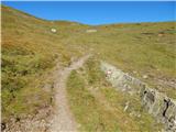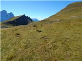 Na usjeku gdje je raskrižje lijevo se odvaja dobro uhodana staza 436 prema sedlu Forcella Ambrizola, a mi idemo desno na slabo vidljivu stazu 465. Slabo vidljiva staza se ovdje počinje spuštati travnatim padinama i dovodi nas do prijelaz.