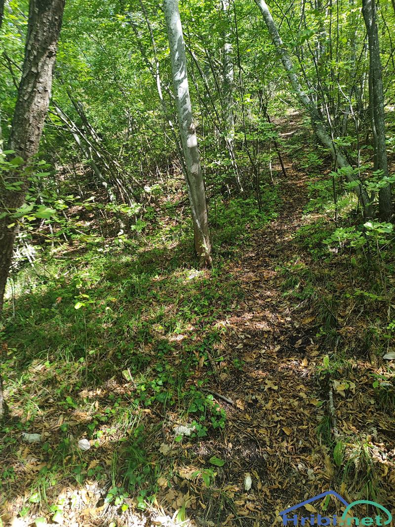 Nemarkirana stezica gre strmo skozi strnjen gozd.