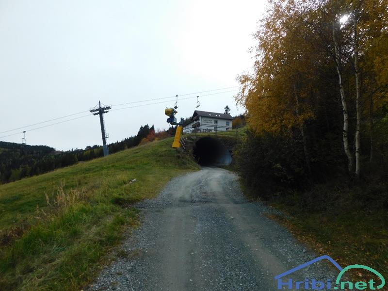 Ko prispemo do smučišča nadaljujemo skozi kratek predor.