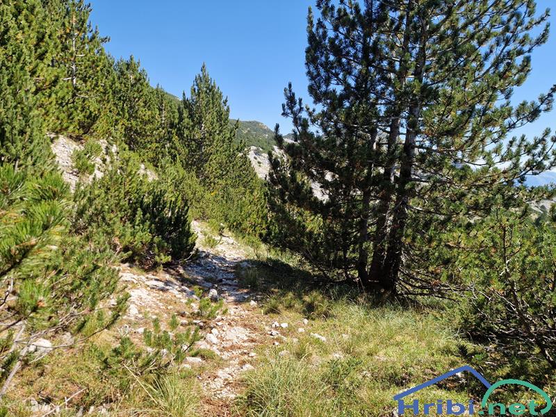 Ob poti je nekaj osamljenih dreves.