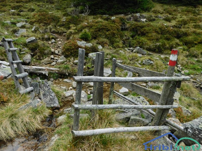 Tu dosežemo bolje uhojeno in bolje markirano pot. Nadaljujemo desno.
