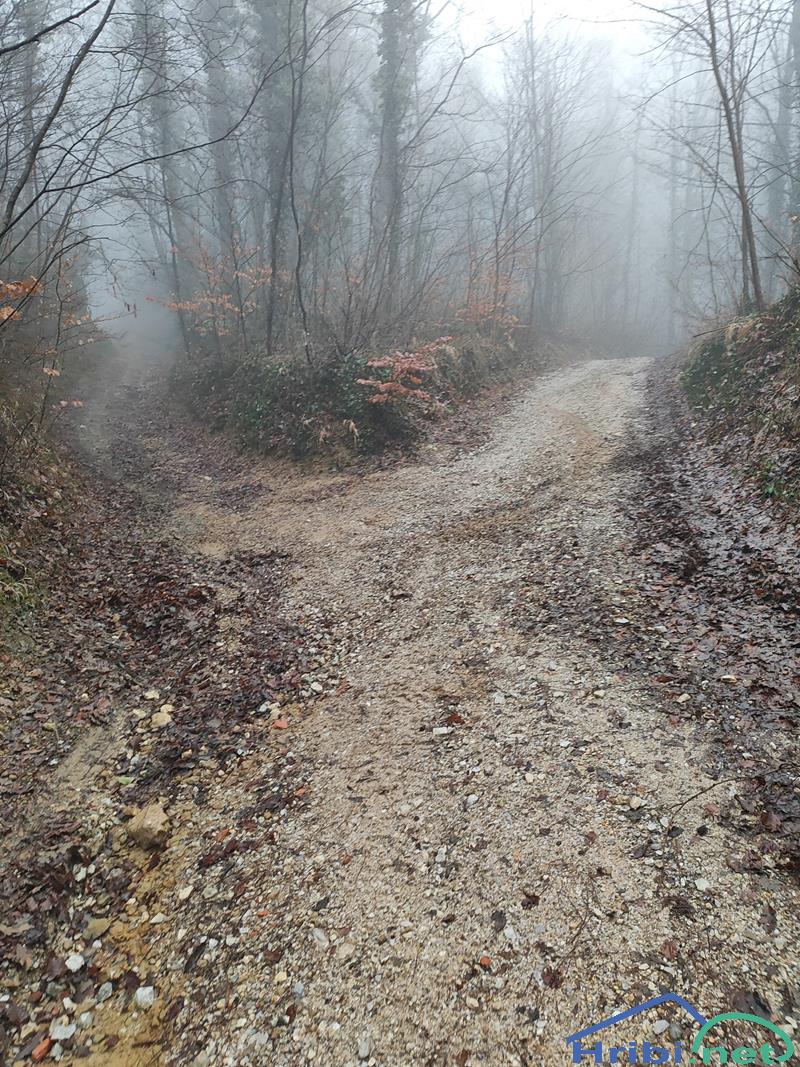 Na prvem razpotju gremo levo na slabši kolovoz.