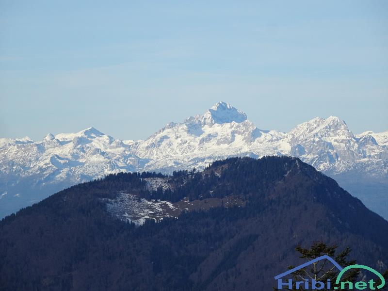 Dobrča in zadaj Kanjavec, Triglav in Rjavina