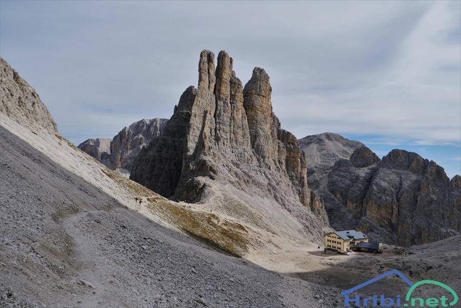 Po obisku nove pridobitve se spustiva v dolino Vajolet stolpov, ki so raj za plezalce