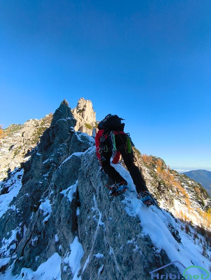 Ko dosežemo rez grebena je takoj potrebno "v rikverc" odplezat.