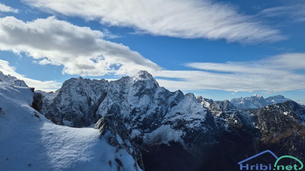 Mali Koritniški Mangart (2333 m), Mangart (2678), Viš (2666 m) in Montaž (2753 m).