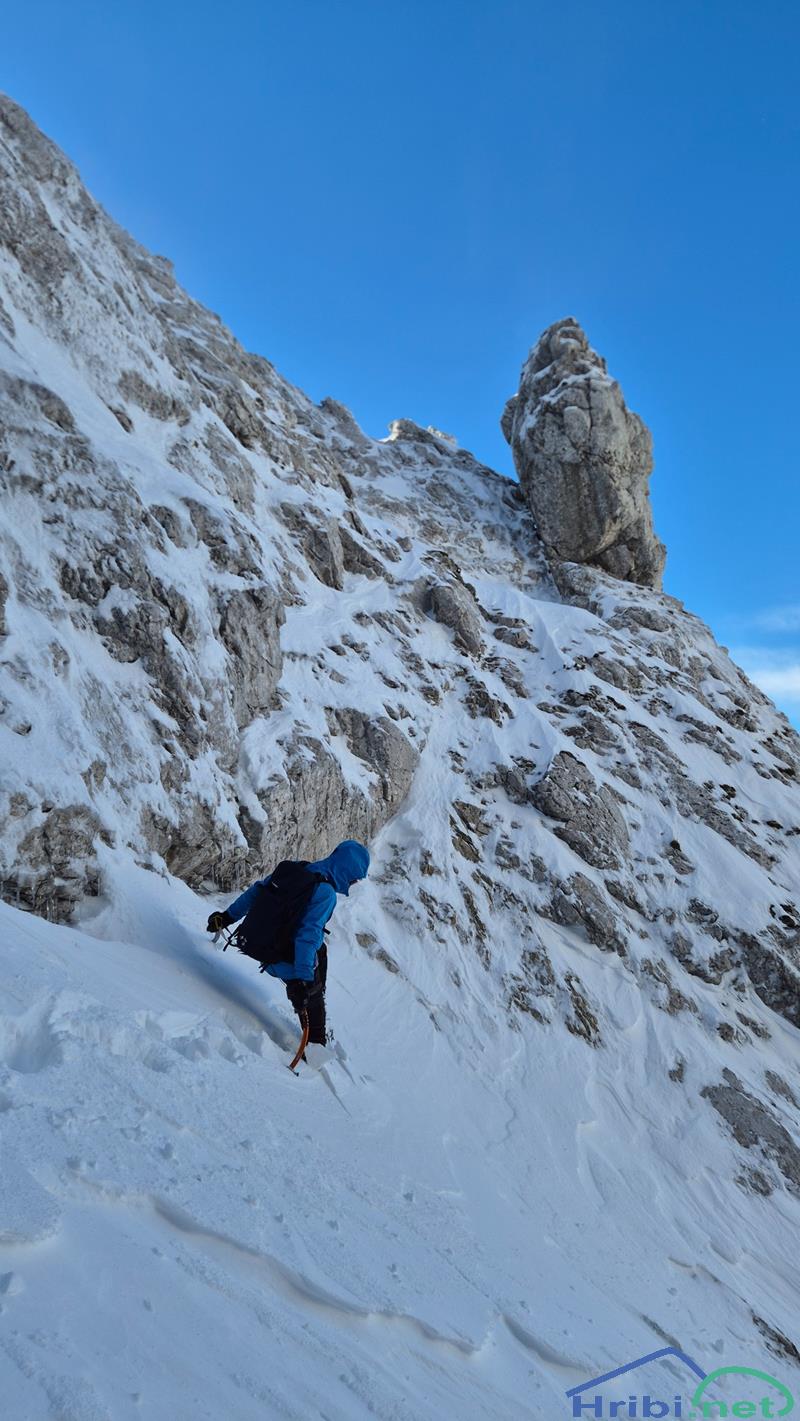Ko se grapa postavila navpik, sva se usmerila proti temu stolpiču.