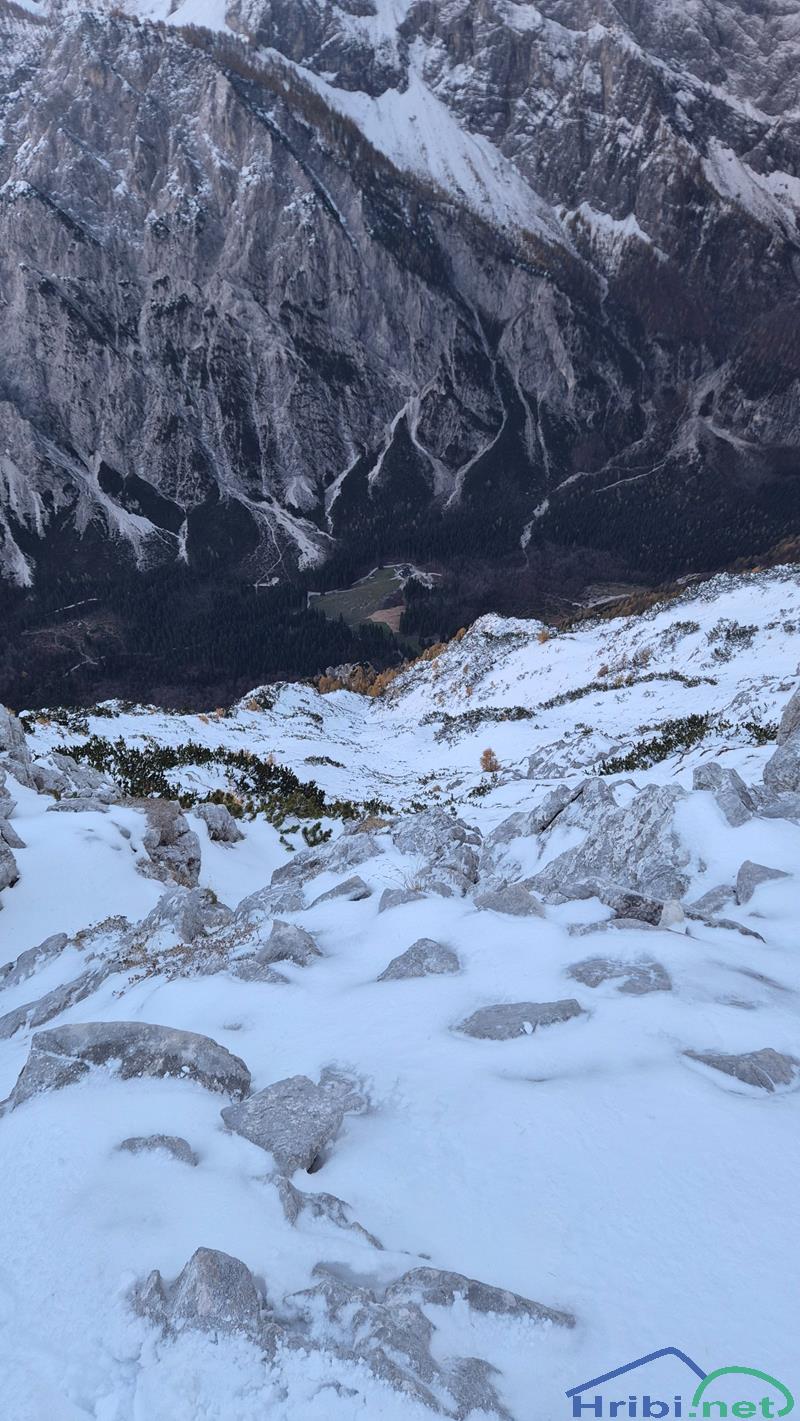 Z vrha Srednje Ponce sestopamo po markirani poti ki sledi nekakšni grapi, dokler ista ne postane preveč strma.