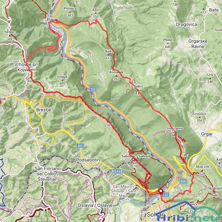 Škabrijel, Sabotin, Vodice in Sveta Gora