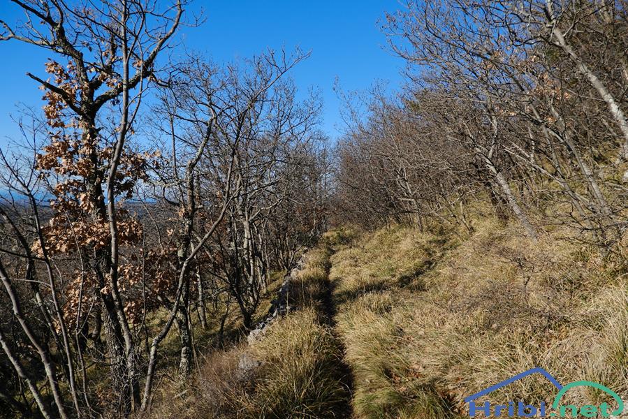 Edini nemarkirani del. Dva kilometra dolga stezica skoraj vodoravno preči pobočja nad železnico