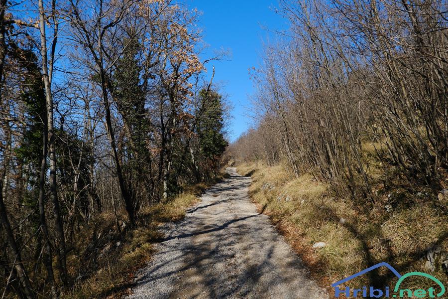 Sledi makadamska cesta mimo lovskega doma pod Glavico v smeri izhodišča