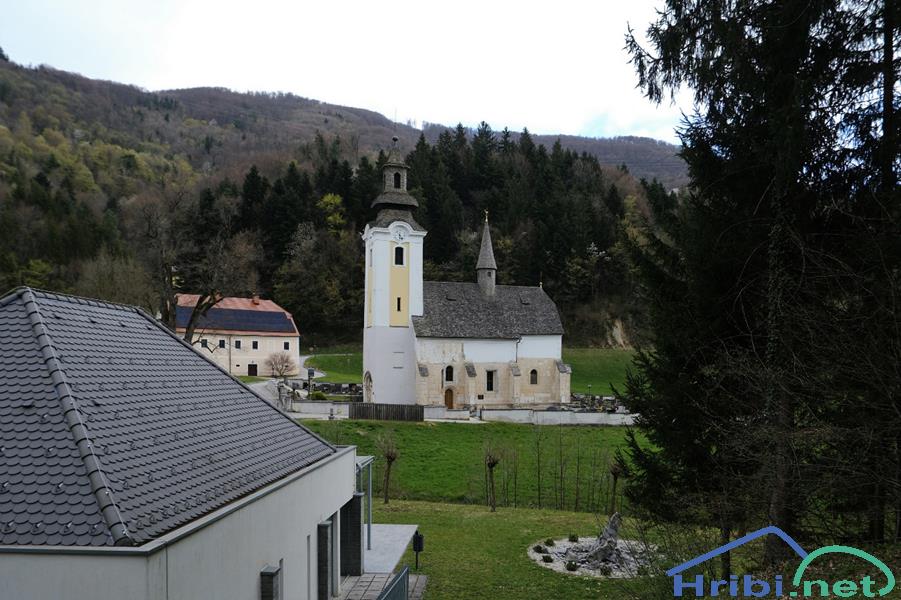 Špitalič in značilna cerkev s stolpom na stehi. Tu zavijem levo