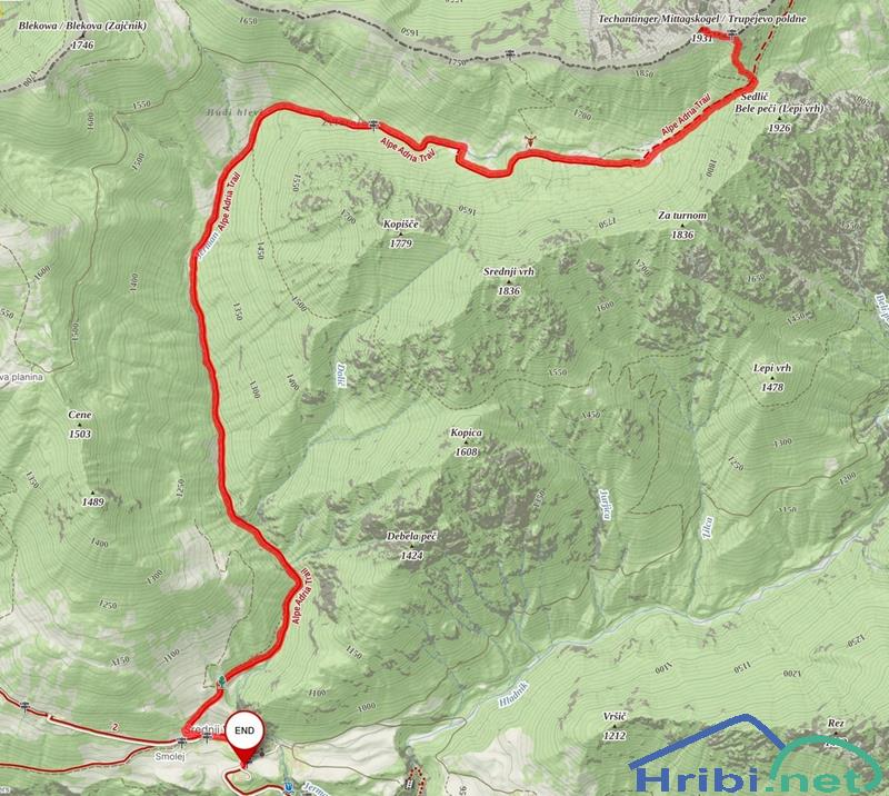 GPS sled. Nabralo se je 12 km in 900 višincev