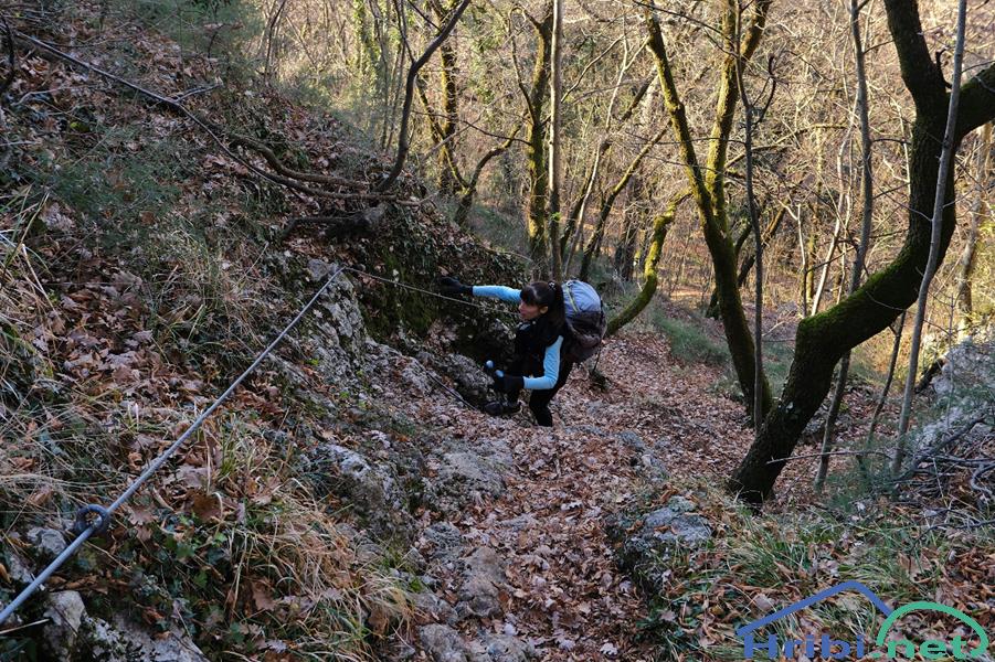 Pri stolpu sta spet dve varianti dostopa na vrh. Izbereva ta strmo