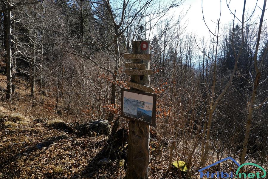 Hitro zapustiva Kucelj in se pri prvem odcepu usmeriva proti Mali gori