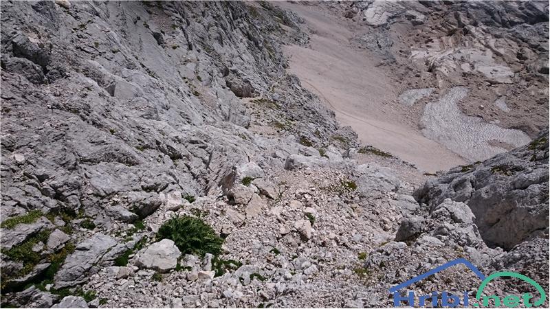 Pogled proti melišču s poševnega žleba na Visoki Kanin