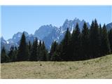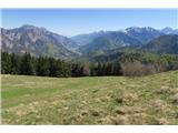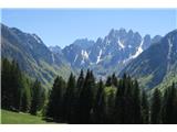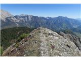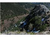 Lahko bi rekao nevažna gora koju samo rijetki koji voze Kanalom dolinom iz smjera Trbiža prema Udineu (Vidu) uopće primjećuju. Prije nekoliko godina već sam s nje smuča'o. Počinjem na sedlu Cereschiatis. Ovaj put idem suprotnim smjerom, po lijepoj privatnoj cesti zatvorenoj za javni promet hodam manje od sata do gornje planine Glazzat, gdje ljeti postoji i živahni seoski turizam. (Imati nešto takvo kod nas u TNP-u već je bogohulna misao, čak i izvan nije previše poželjno). Na planini se ogledam po okolnim vrhovima, zatim idem dalje prema zapadu cestom do obližnje raskrižja, još uvijek po stazi 434, onda se uputim na nekakav kolski put i u blagom usponu prelazim šumovito greben. Staza se kasnije lagano spusti do sljedećeg raskrižja, gdje slijedim oznake staze 453 na vrh Crete dal Oronz. Snijega ima u tom dijelu do oko pola metra, ali prije nekoliko dana već je netko hodao, pa je staza načinjena. S vrha naravno prekrasan pogled na okolne vrhove, gdje posebno izdvaja Crete di Gleris na jugu (ispod planine ide plinovod), pa Creta Grauzaria i Monte Sernio na zapadu, Monte Zermula s nešto nižim Pizzulom, pa planina Pradulina i iznad nje Monte Salinchiet, na sjeveru izdvaja se Konjski Špik (Monte Cavallo) pa Creta di Pricotič i Creta di rio Secco, te naravno oba Malvuericha (Mala vrha po Vidovo). Ukratom, za tako neprimjetan vrh prekrasan je pogled i zato nije čudno da je od mog zadnjeg uspona tamo više Slovenaca nego Talijana, od poznatih Stritarjevih, do Ivana s Planine pri Horjulu, s kojim sam se prije godina sreo pod Cimo Palombinom, pa moji bivši učitelji i učiteljice ispod Šmarne gore, pa najstarija i najaktivnija planinarka našeg PD sa svojom kćeri Marjetom. S vrha silazim po stazi uspona do razvoda, zatim po lijepoj označenoj stazi natrag na sedlo. Pretpostavljam da će Miro dodati neke slike s ove ture, koji redovito oživljava sjećanja na prohođene staze. U suhim uvjetima preporučujem ovaj lijepi krug i za obitelji s djecom, sve zajedno traje 5-6 sati.