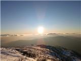 Krasni razgledi so kar klicali po daljšem postanku, kasneje pa sva začela sestopati po 749 v smeri Doma pod Matajure. Tu se nisva ustavljala, ampak sva nadaljevala proti planini Malga Gosgnach, sedlu Hlevišče, sedlu Sv. Jur, sedlu Sv. Kocjan in prišla ven v vasi Gorenj Barnas. Od tu je sledil le še spust proti izhodišču, kamor sva prišla v zadnjih izdihljajih sonca. Dolina je ozka in zakotna, tako da kakšnega obilja sončne svetlobe v tem zimskem času nima. Pred nama je bil le še povratek domov, večino po udobni avtocesti. Več v foto-zgodbi ...