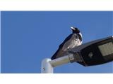 Zelo verjetno je to kačar (Circaetus gallicus). Na slikah se vidi svetla (bela) spodnja stran ptice. Na sliki 4 sta vidna temnejša (rjava) glava in vrat. V krempljih ima kačo, ki je njegov glavni plen.