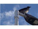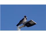 Sežanska črnobela vrana. Danes popoldan je opazovala promet pred Hoferjem.